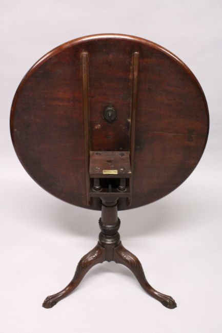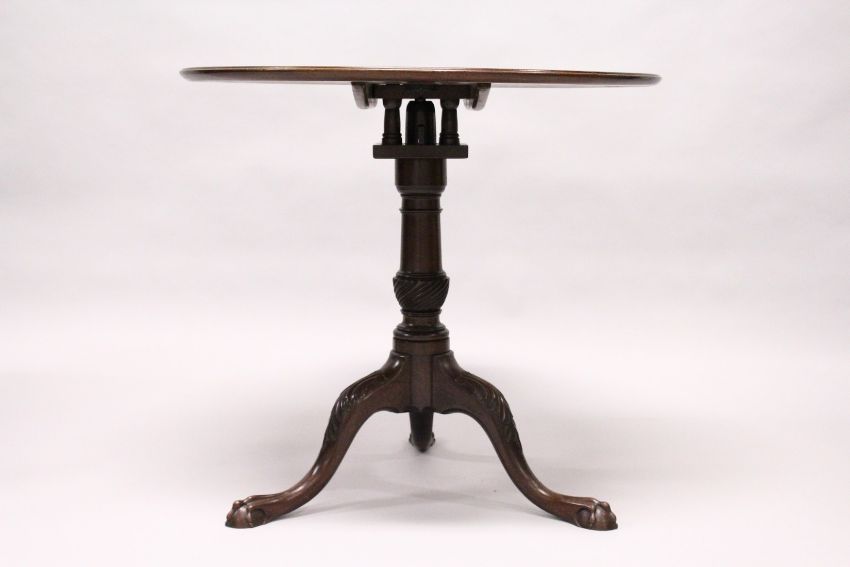 A GEORGIAN MAHOGANY CIRCULAR TRAY TOP TRIPOD TABLE with bird cage support