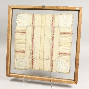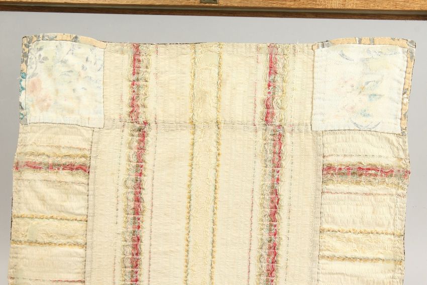 A FRAMED AND GILDED DOUBLE SIDED SILK EMBROIDERY.