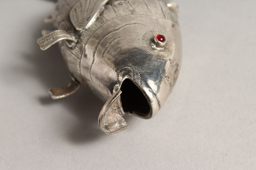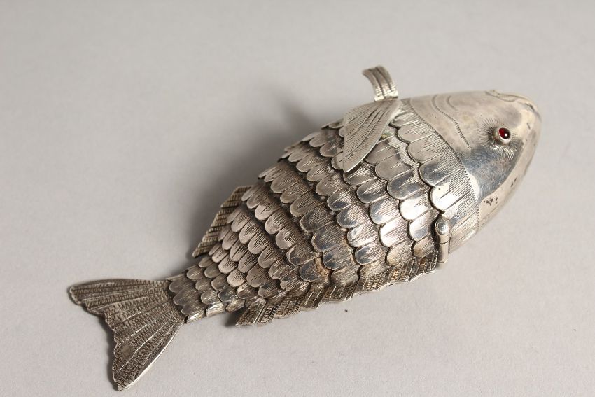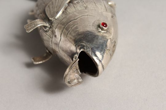 A GOOD DUTCH SILVER ARTICULATED CARP with hinged head