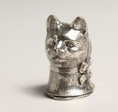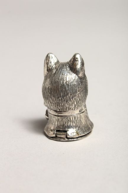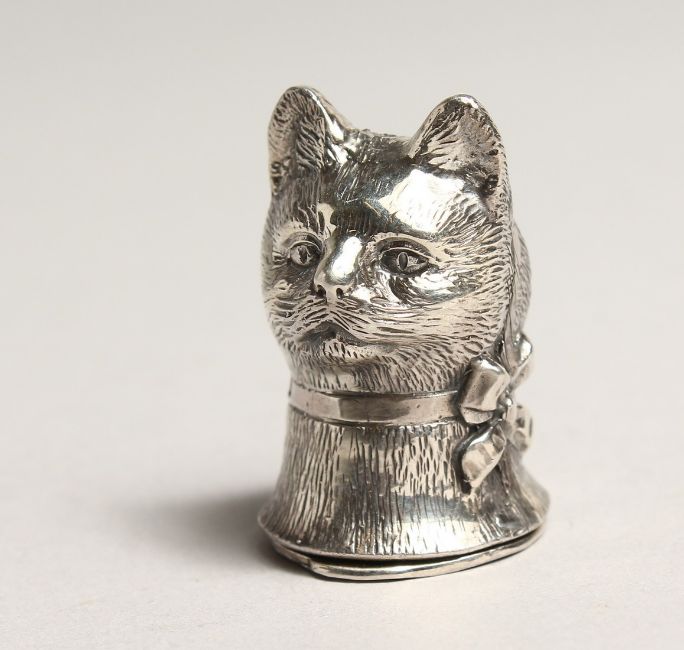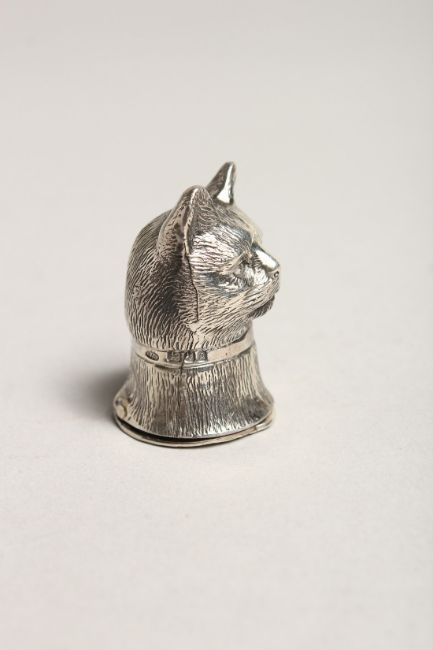 A SILVER NOVELTY CAT'S HEAD VESTA