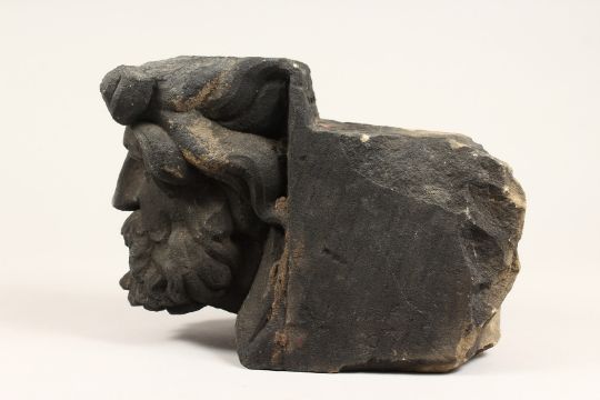A POSSIBLY MEDIEVAL, CARVED STONE CORBLE