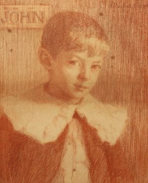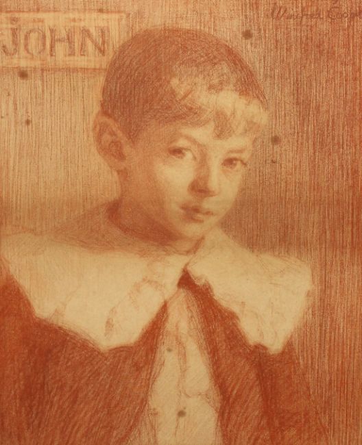 Winfred Cooper, Portrait of a young boy, 'John', sanguine crayon drawing, signed and dated 1901, 18.25" x 14.5".