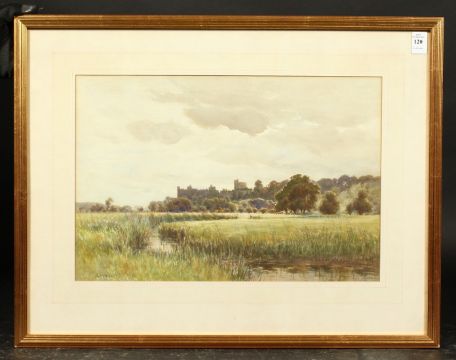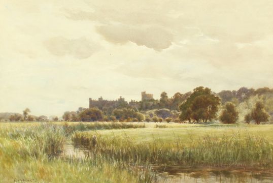 Cyrill Ward (1863-1935) British, A view of Windsor Castle from the fields, watercolour, signed, 11.5" x 17.25".