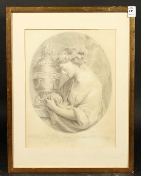 Attributed to G.B Cipriani (1727-1785) Italian, A young woman with an urn, grey wash drawing, inscribed indistinctly, 13.5" x 10.5".