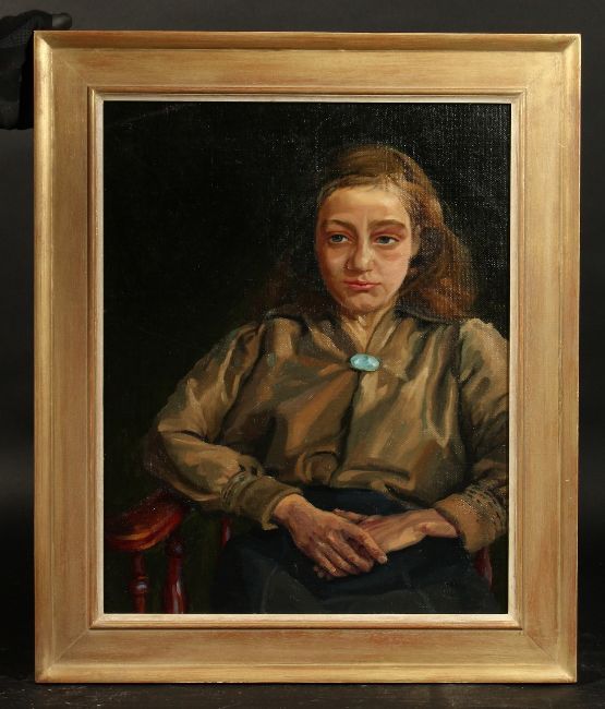 20th Century School, A portrait of a seated lady, oil on canvas laid down, 19.5" x 15.5".