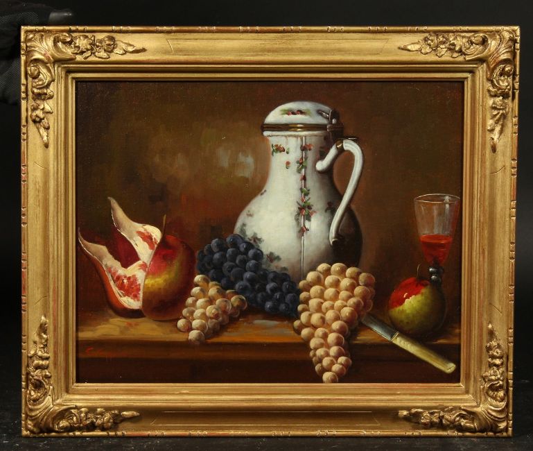 S. Eggers (20th Century), A still life of fruit and a porcelain jug, oil on panel, signed, 12" x 16".