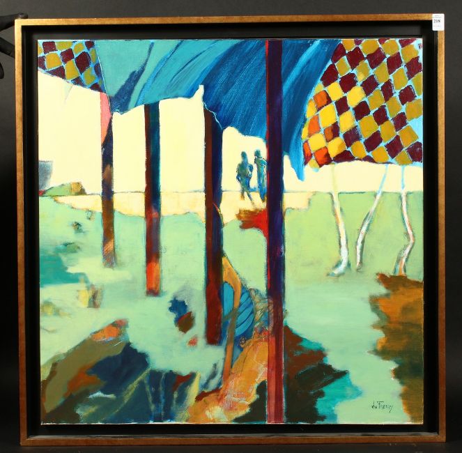 Christian Halna de Fretay (b. 1945) French, A view of figures through trees, oil on canvas, signed, 29" x 29" (73 x 73 cm).