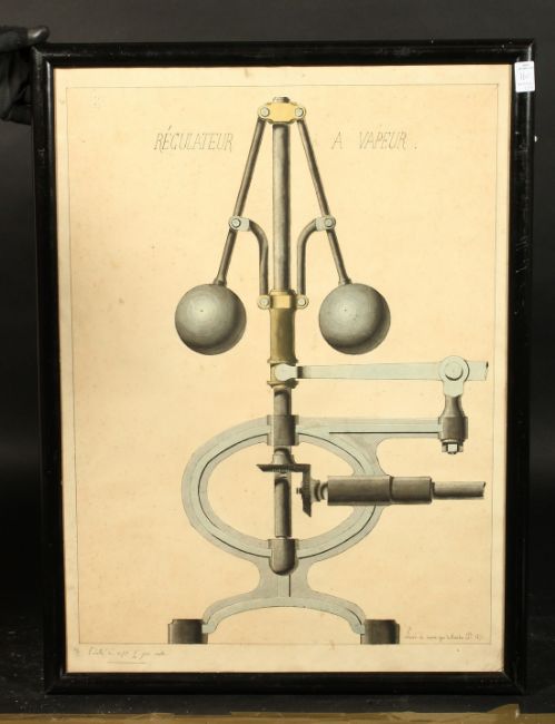 French School, Circa 1871, A pair of industrial drawings of a 'Machine Verticale a Vapeur' and 'Regulateur a Vapeur', watercolour and ink, each 26" x 19", (2).