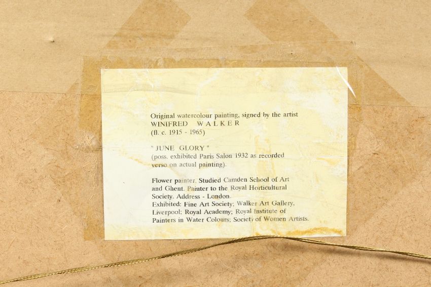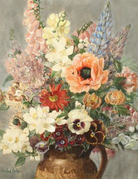 Winifred Walker (fl. c. 1915-1965) British, 'June Glory' still life of flowers, watercolour, signed, 18.75" x 15".