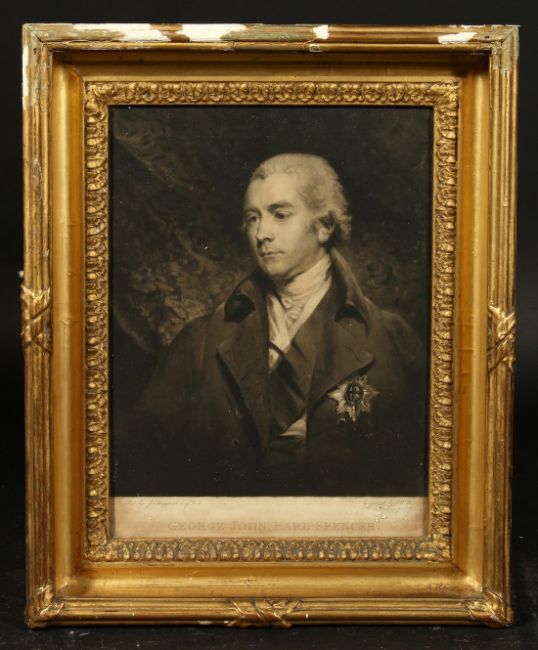 S W Reynolds after John Hoppner, 'George John, Earl Spencer', mezzotint 13" x 10", along with another similar portrait of a lady, 14" x 10" (2).