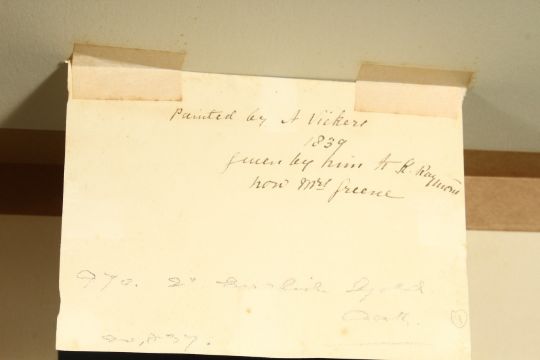 Attributed to Alfred Vickers (1786-1868) British, Figures on a riverbank, watercolour, inscribed verso and dated 1839, 4.5" x 6.5", (unframed).