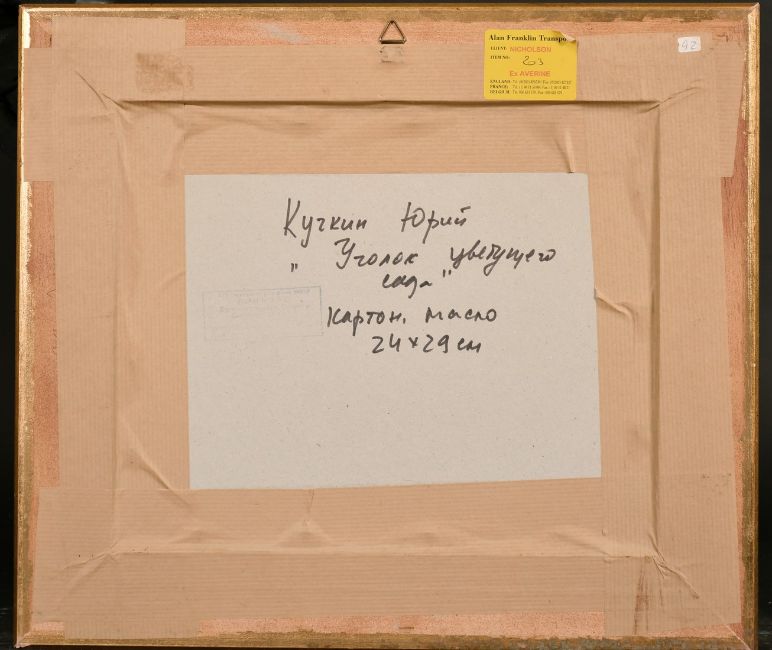 Yuri Kuchkin (b. 1942) Russian, 'A Corner in the Blooming Garden, oil on board, signed, 11" x 9".