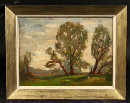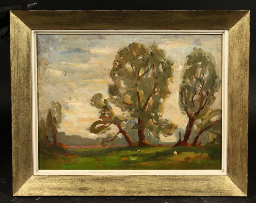 John Brown (20th Century) British, Landscape with trees, oil on board, signed withinitials, 12" x 16".