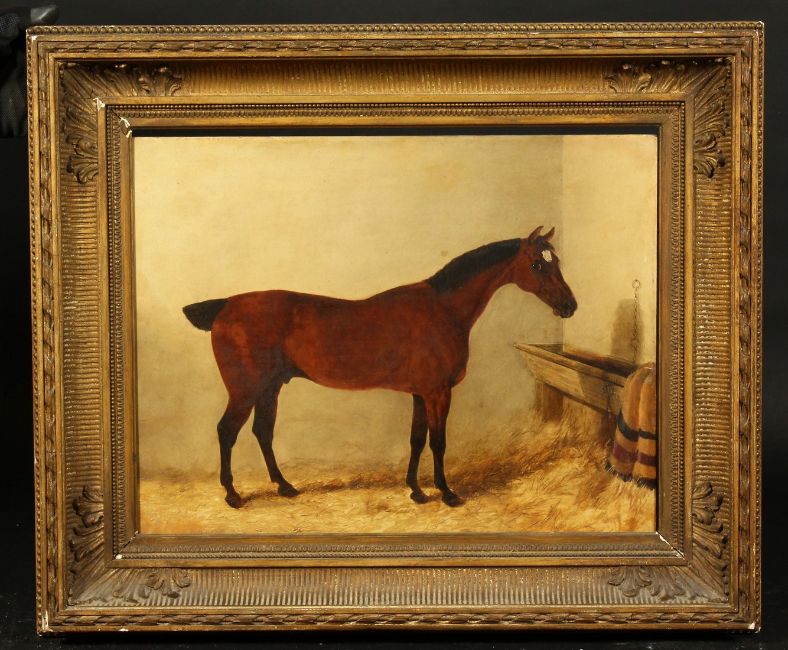 19th Century English School, A chestnut horse in a stable, oil on panel, 14" x 18".