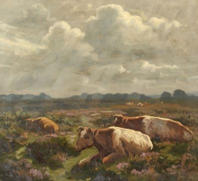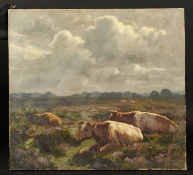 Early 20th Century British, Cattle on a Heath, possibly in the New Forest, signed with initials, 22" x 24".
