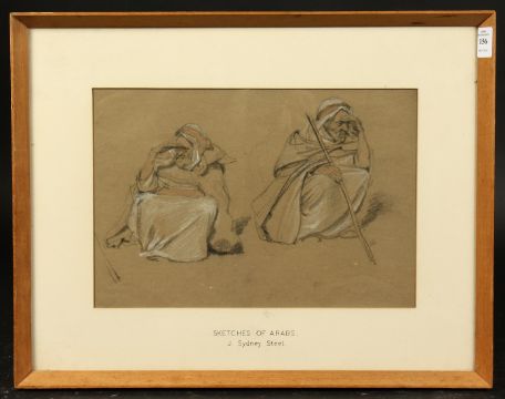 John Sydney Steel (1863-1932), 'Sketches of Arabs', a study of two figures, pastel, 9" x 13".