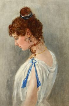 Mid-20th Century School, A bust length portrait of a lady in profile, oil on canvas, 30" x 20".