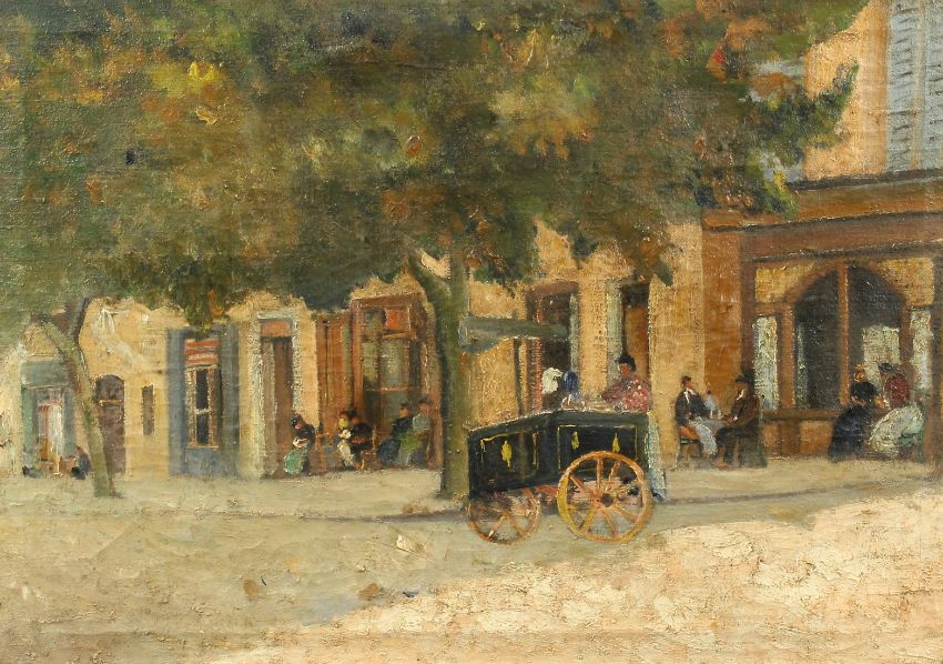 Continental School, (Late 19th Century/ Early 20th Century) Figures on a busy street, oil on canvas, 19.5" x 27.5".