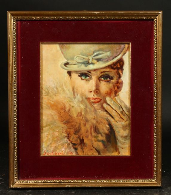 Santoboni 1966, Head study of an elegant lady, oil on board, 11" x 8.75".