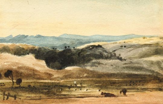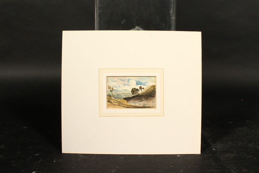 Attributed to John Varley (1778-1842) British, Four small watercolours, three landscapes and one of a house, 2.25" x 3.75", (unframed) (4).