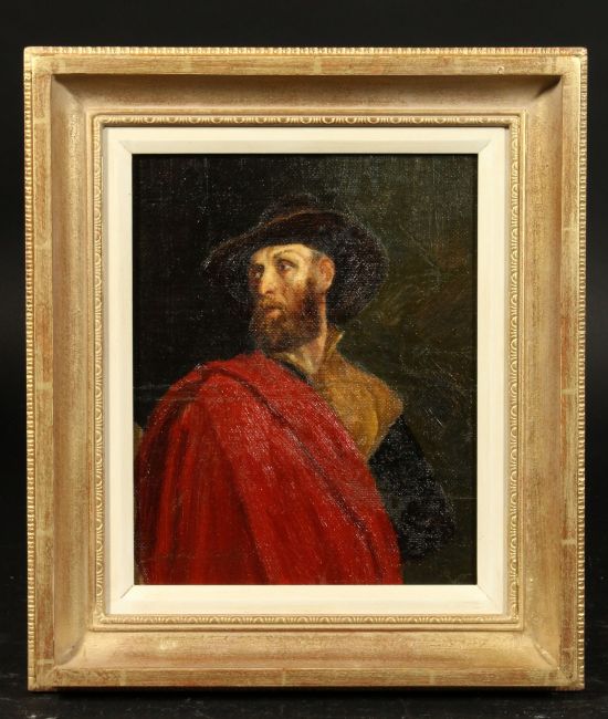 19th/20th Century English School, A portrait of a gentleman with a red cloak, oil on canvas laid down, 10" x 8", and another similar by the same hand, 9" x 7" (2).
