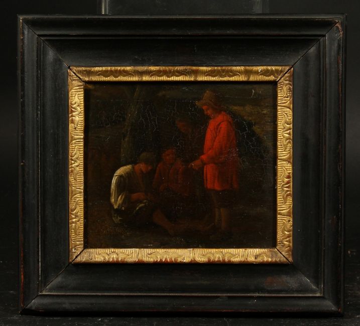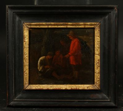 Follower of Andries Both (1611-1641) Flemish, Figures gathered in a woodland setting, oil on panel, signed A Both, 6.5" x 7.25".