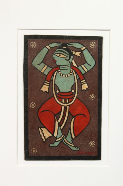 Jamini Roy (1887-1972) India, a mixed media colourful depiction of a Deity, 9" x 5.5".