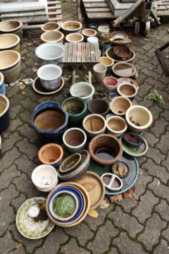 A large quantity of small garden pots and pot stands etc.
