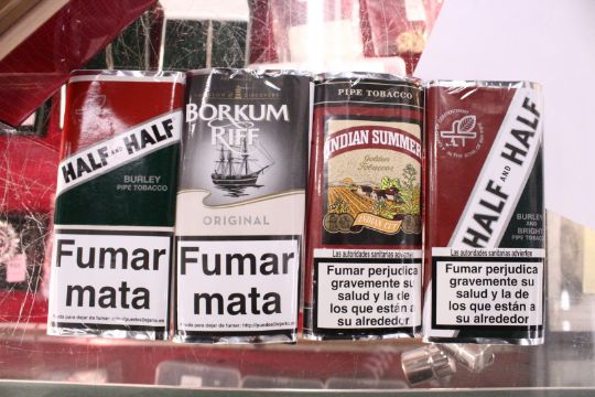 A stylish humidor containing pouches of tobacco.