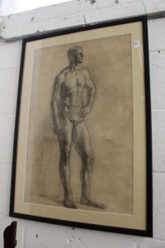 20th century Russian School, a study of a standing male figure, charcoal.