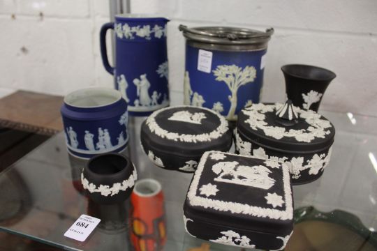 Wedgwood Jasper ware boxes and covers, a jug etc.
