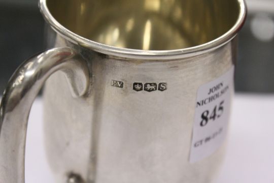 A plain silver half pint mug, Sheffield 1960, 6ozs.