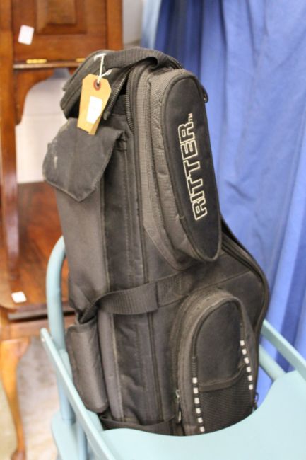 A cased saxophone.