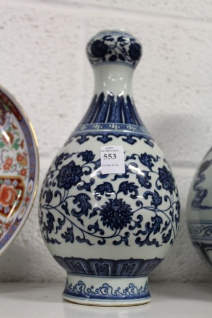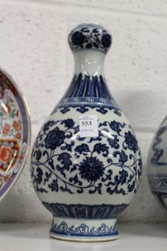 A Chinese blue and white garlic neck vase.