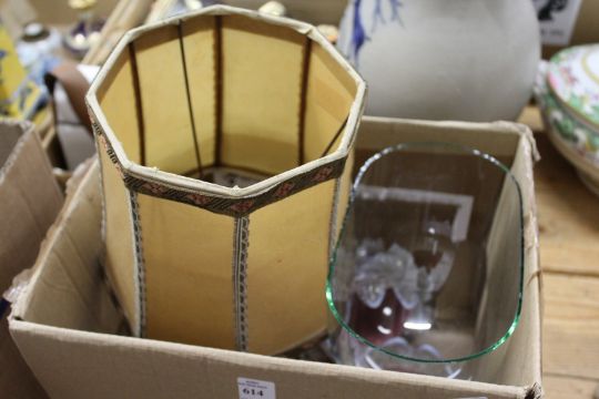 A glass dome, a pair of glass lights and a lamp.