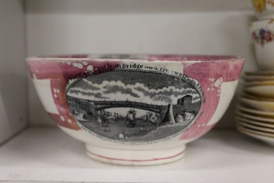A Sunderland lustre ware bowl decorated with typical scenes including the Sailor's Farewell.