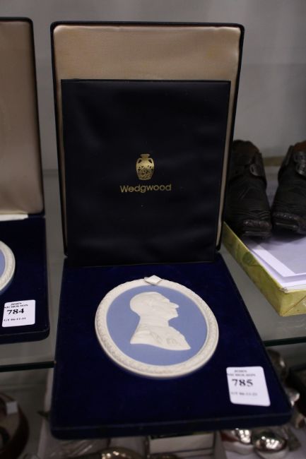A Wedgwood blue and white Jasper ware oval plaque The Earl of Mountbatten of Burma, in original box.