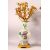 A GOOD PAIR OF CHINESE PORCELAIN AND ORMOLU VASES / CANDELABRA, the vases with crackle glaze and depicting numerous lion dogs, the candelabra with gilded branches in the form of flowers, each with six candle holders, both approx. 77cm high.