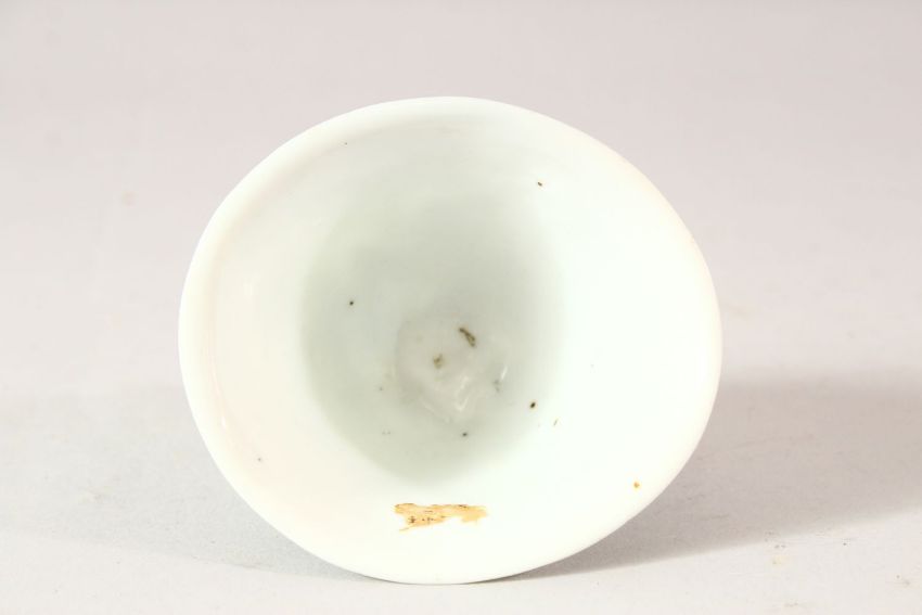 A CHINESE BLANC DE CHINE PORCELAIN LIBATION CUP, with moulded floral decoration, 9cm wide.