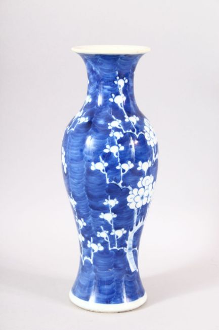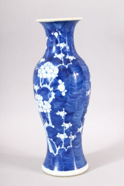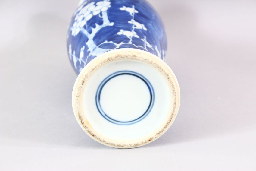 A 19TH CENTRY CHINESE BLUE & WHITE PORCELAIN PRUNUS VASE - The base with double blue rings - 30cm