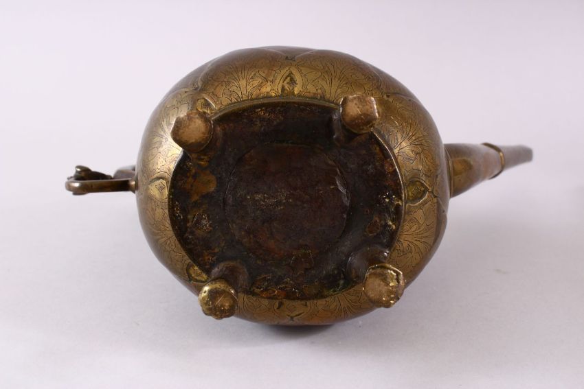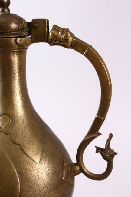 A LARGE 18TH CENTURY MUGHAL INDIAN BRASS EWER, 38cm high.