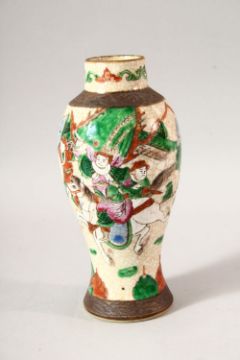 A SMALL CHINESE CRACKLE WARE VASE, painted with warriors, 21.5cm high.