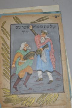 A COLLECTION OF HEBREW / JEWISH PAINTED MANUSCRIPT LEAVES, depicting figures, various sizes.