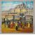 A LARGE ISTANBUL PAINTING OF A MOSQUE ON BOARD - depicting the scenes of figures in a mosque setting, 100cm x 100cm.