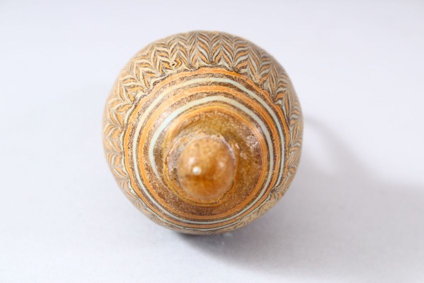 A MARVERED GLASS VESSEL / VASE, possibly Roman, 13cm high.