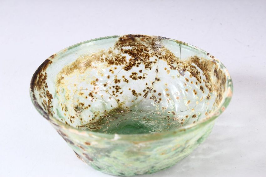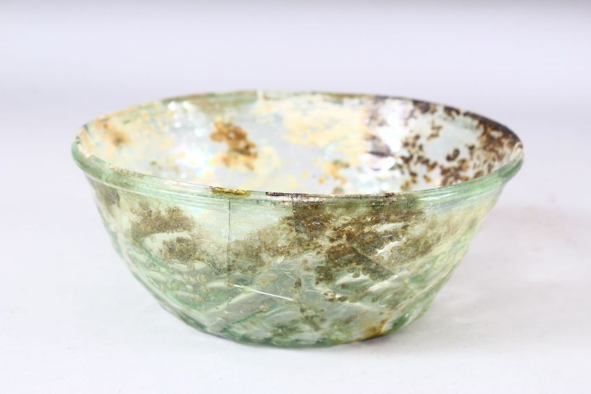 AN ISLAMIC GLASS BOWL, 16.5cm diameter.