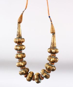 AN ISLAMIC GILDED SOFT METAL NECKLACE.