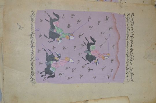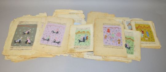 A COLLECTION OF INDIAN PAINTED MANUSCRIPT LEAVES, depicting hunting scenes, various sizes.