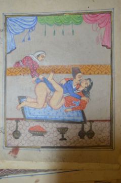 A COLLECTION OF INDIAN PAINTED MANUSCRIPT LEAVES, depicting erotic subjects, various sizes.
