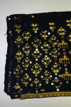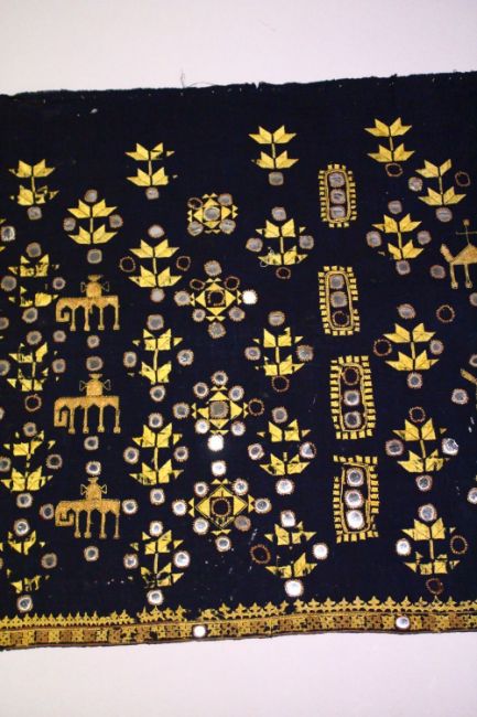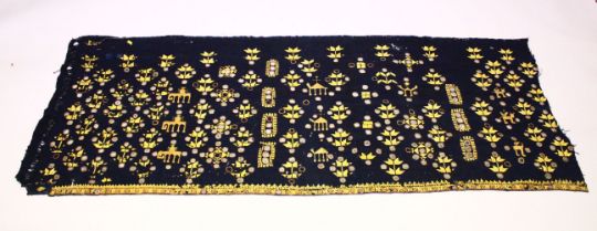 AN INDIAN SUZANI EMBROIDERD TEXTILE, with mirrored roundels, 180cm x 73cm.